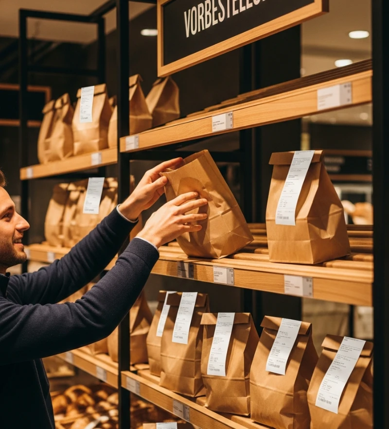 Ihr Arbeitsablauf bleibt einfach: Bestellzettel nehmen, Bestellung packen, Zettel an die Tüte heften. Das war’s. Alles andere ist automatisch.