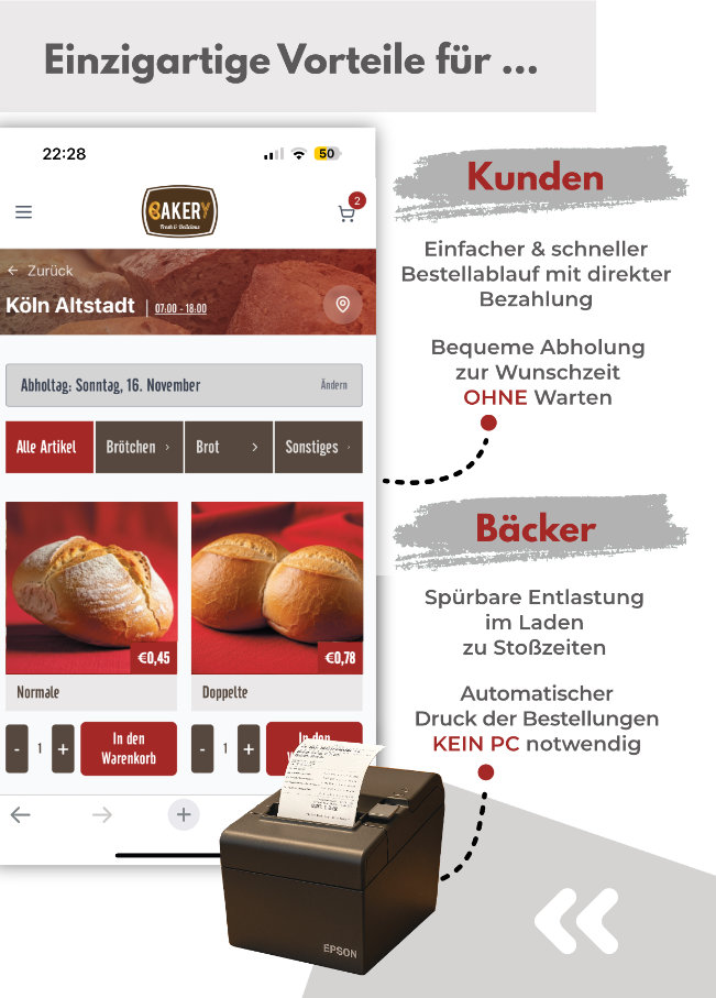 Bedienen Sie mehr Kunden in kürzerer Zeit. Vorbestellungen bedeuten garantierte Verkäufe und bessere Produktionsplanung. Kunden kommen gern auch zu Zeiten hoher Auslastung.So einfach ist es wirklich